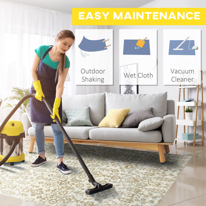 How to complete your room? With HOMCOM large rugs for living room. Take its leaf and flower sketched design and soft cashmere-like feel - It brings a touch of character to wherever you choose to place it: the bedroom, living room, hallway or office. A durable design makes it suitable for everyday use, can withstand high foot traffic from everyone, including children and pets. Easy to hoover and spot clean means little hassle keeping it looking its best.