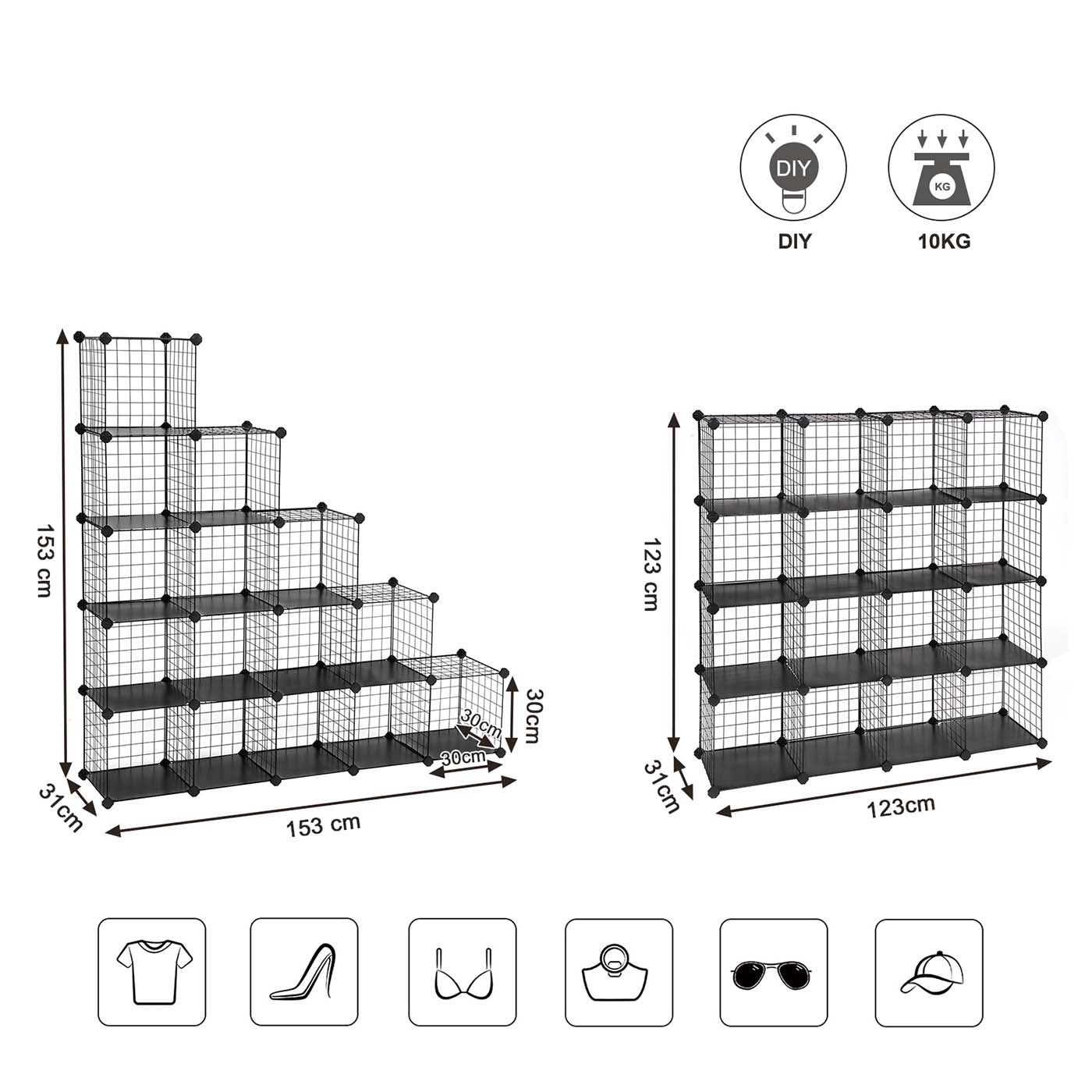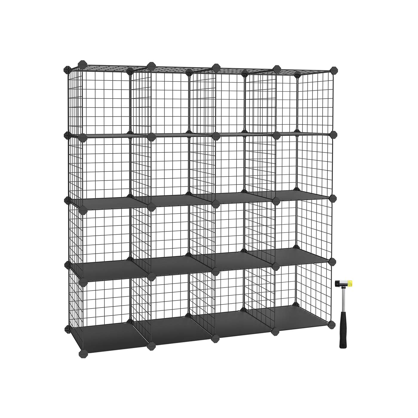SONGMICS 16 Cube Metal Wire Storage Organiser, DIY Closet Cabinet and Modular Shelving Grids, Wire Mesh Shelves and Rack, White LPI44W