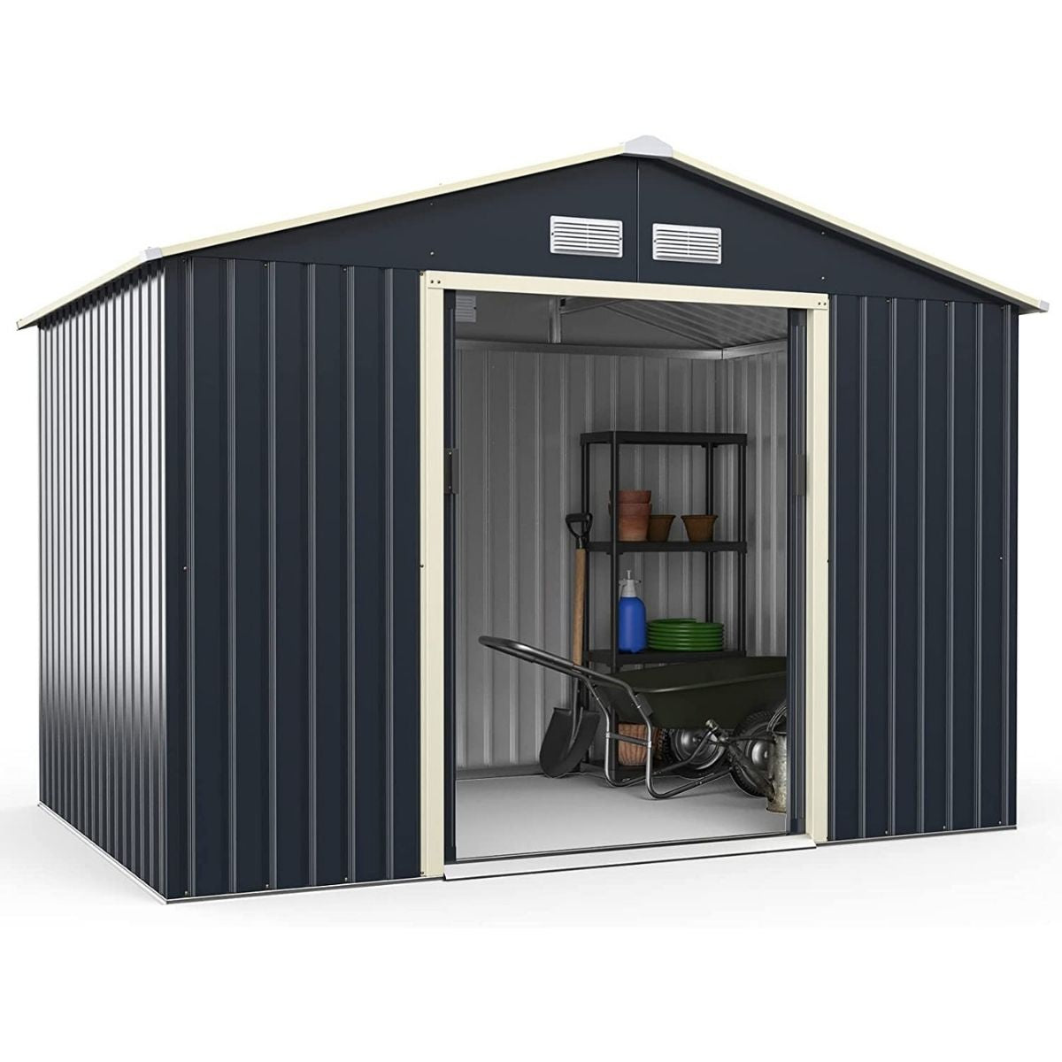 Outdoor Storage Shed with 4 Vents and Double Sliding Door-Size 2