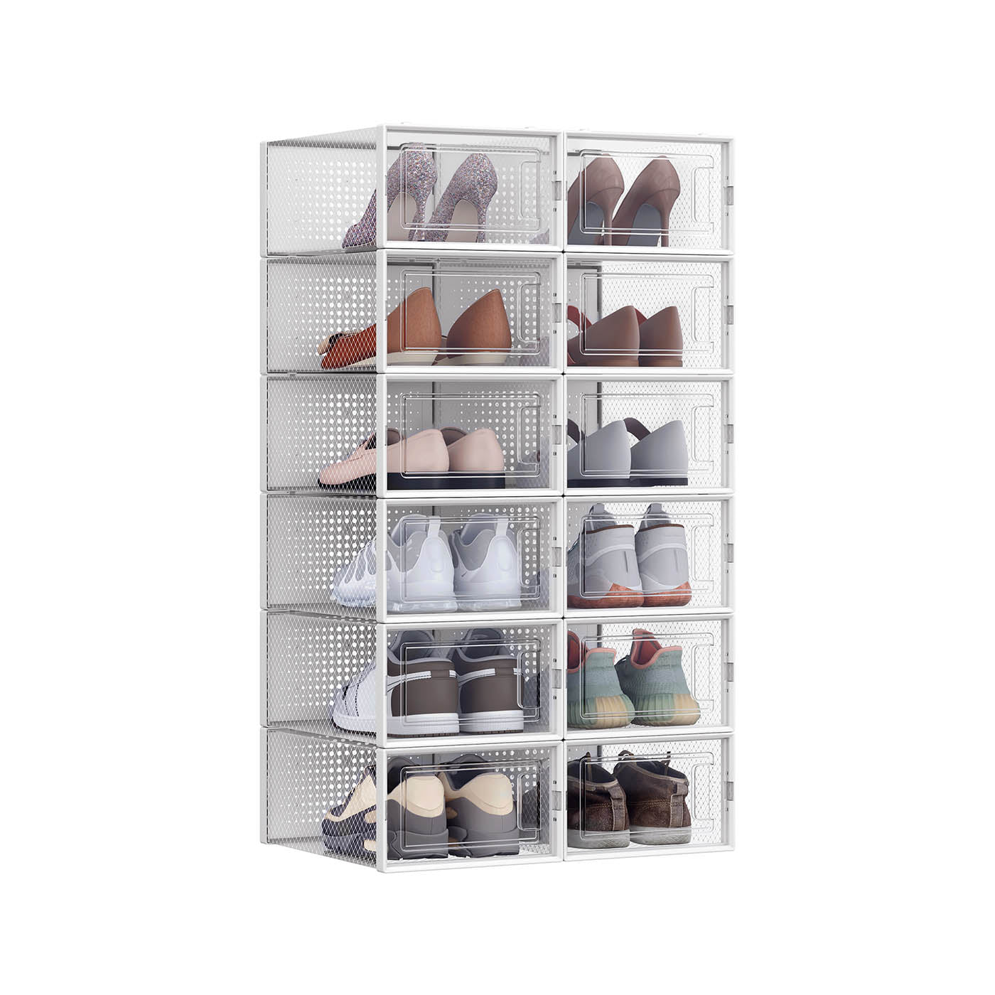 SONGMICS 12 Set Shoe Boxes with Lids Clear Transparent Stackable Versatile Storage Organiser for Crafts Sizes Up to UK 7.5 LSP12WT