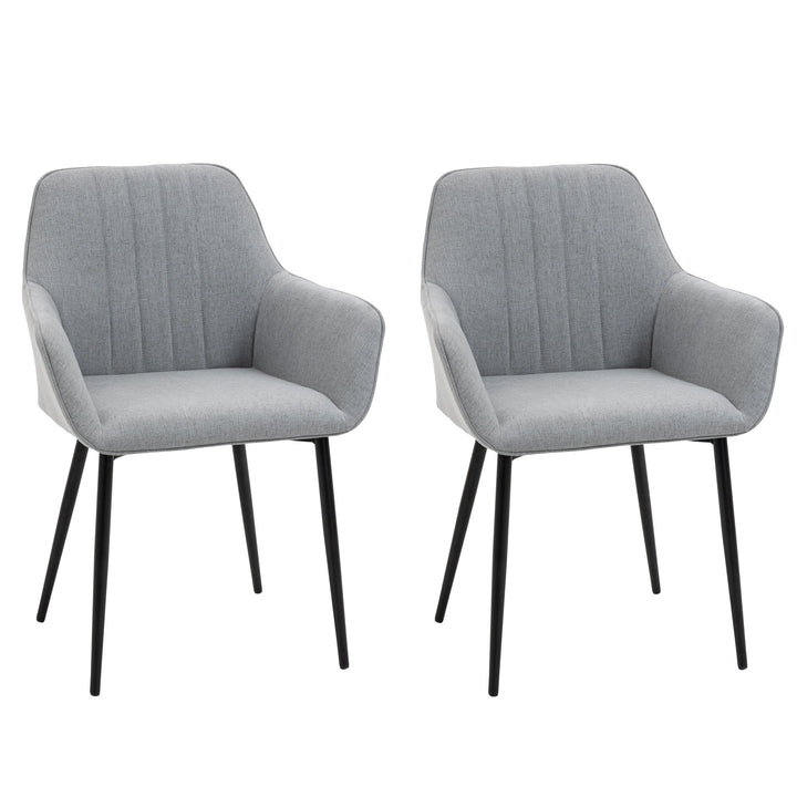 Dining Chairs Upholstered Linen Fabric Accent Chairs with Metal Legs, Set of 2, Light Grey