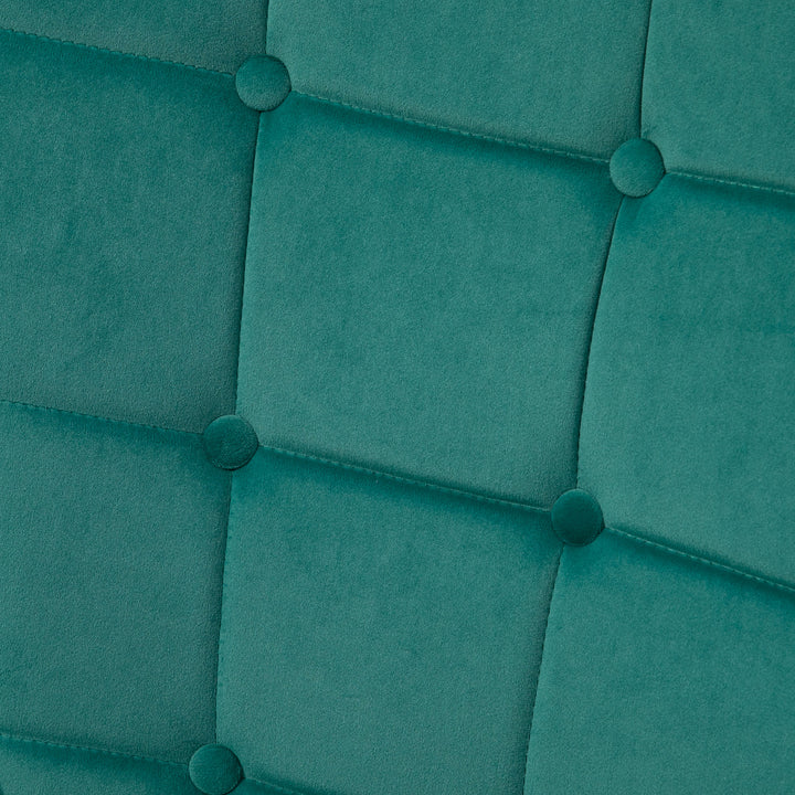 - Gold tone legs and velvet-feel upholstery with tufted surface bring timeworn charm