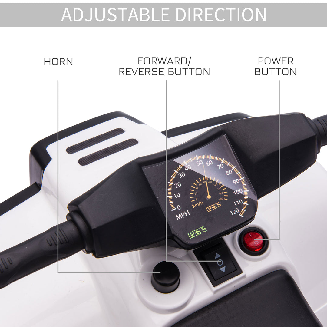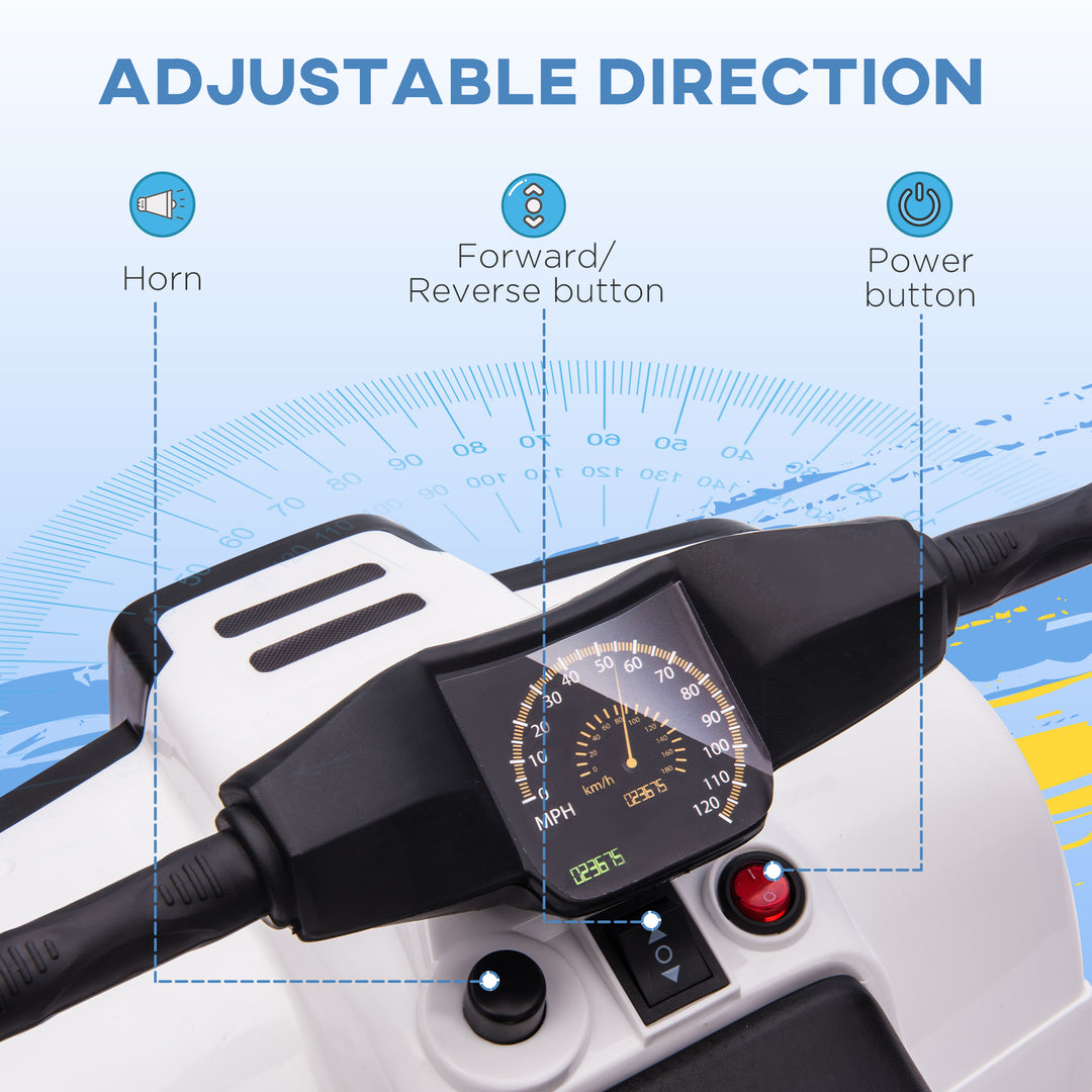 Let them cruise around in style. Give your child this electric ride-on car from HOMCOM. 6V electric powered - a ten-hour charge will provide up to 45 minutes of continuous play. It comes with working lights, the ability to move forwards and backwards, handles to steer and engine and horn sounds - creating a fun and realistic ride every time. The seat is large, with handlebars so they can sit safely; it’s finished with four large tyres so it drives smoothly.