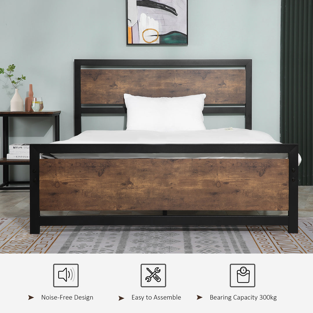 Your gateway to stylish dreaming starts here: this single bed frame from HOMCOM. A brown and black minimal, rugged design creates an industrial look you'll love for seasons. The frame, made from metal for strength, features built-in slats and metal legs for full support. Comes with plenty of under-bed space, so you can discreetly keep boxes and cases stored away, making your room appear bigger.