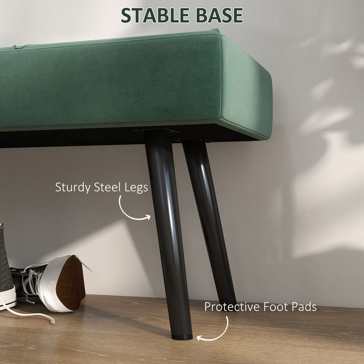 A touch of elegance for the spot you chose: this velvet-feel bed-end bench from HOMCOM. A thickly padded top makes it comfortable to sit on, the upholstery is smooth on skin. Powder coated steel legs for strong support, with foot pads gently protecting your floor. A long length gives plenty of room to and relax.