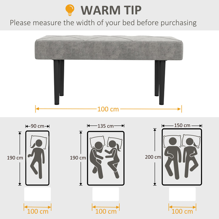 A touch of elegance for the spot you chose: this velvet-feel bed-end bench from HOMCOM. A thickly padded top makes it comfortable to sit on, the upholstery is smooth on skin. Powder coated steel legs for strong support, with foot pads gently protecting your floor. A long length gives plenty of room to and relax.