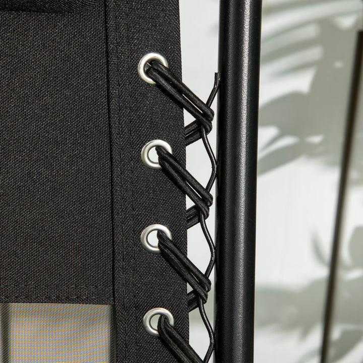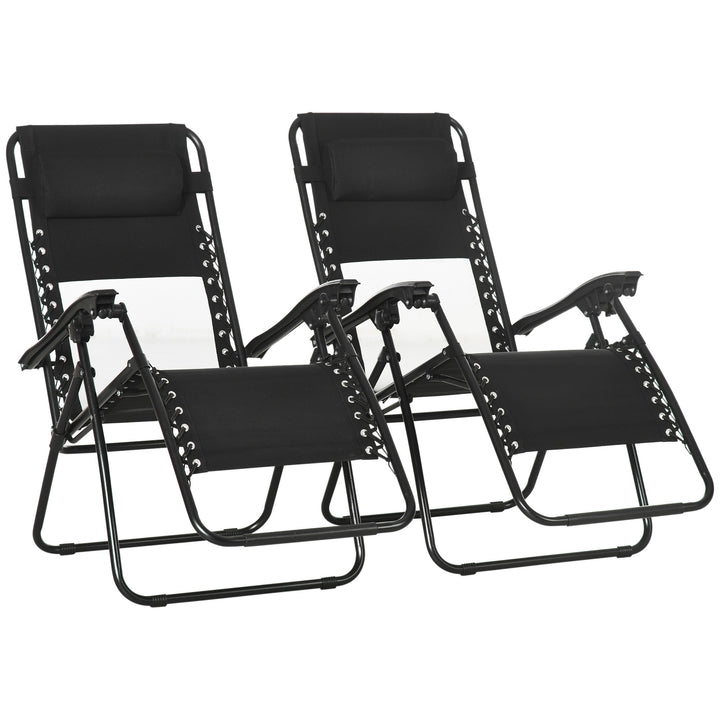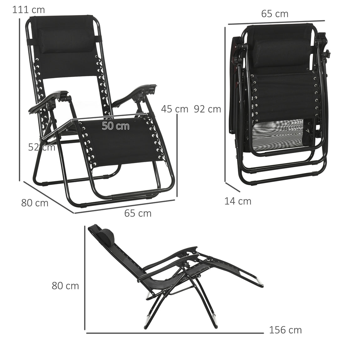 It's time to lounge and relax with Outsunny. This set of two zero gravity chairs are here to elevate the body in a comfortable position, for you to soak up the sun all afternoon long. A powder coated steel frame for a strong core, the frame can be folded so you can carry and store it easily. Comes with a fabric seat, with padded top pillow to rest your head. The back is freely adjustable to any angle you want - with a lock to fix the chosen position in safely.