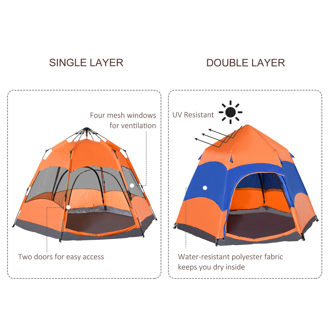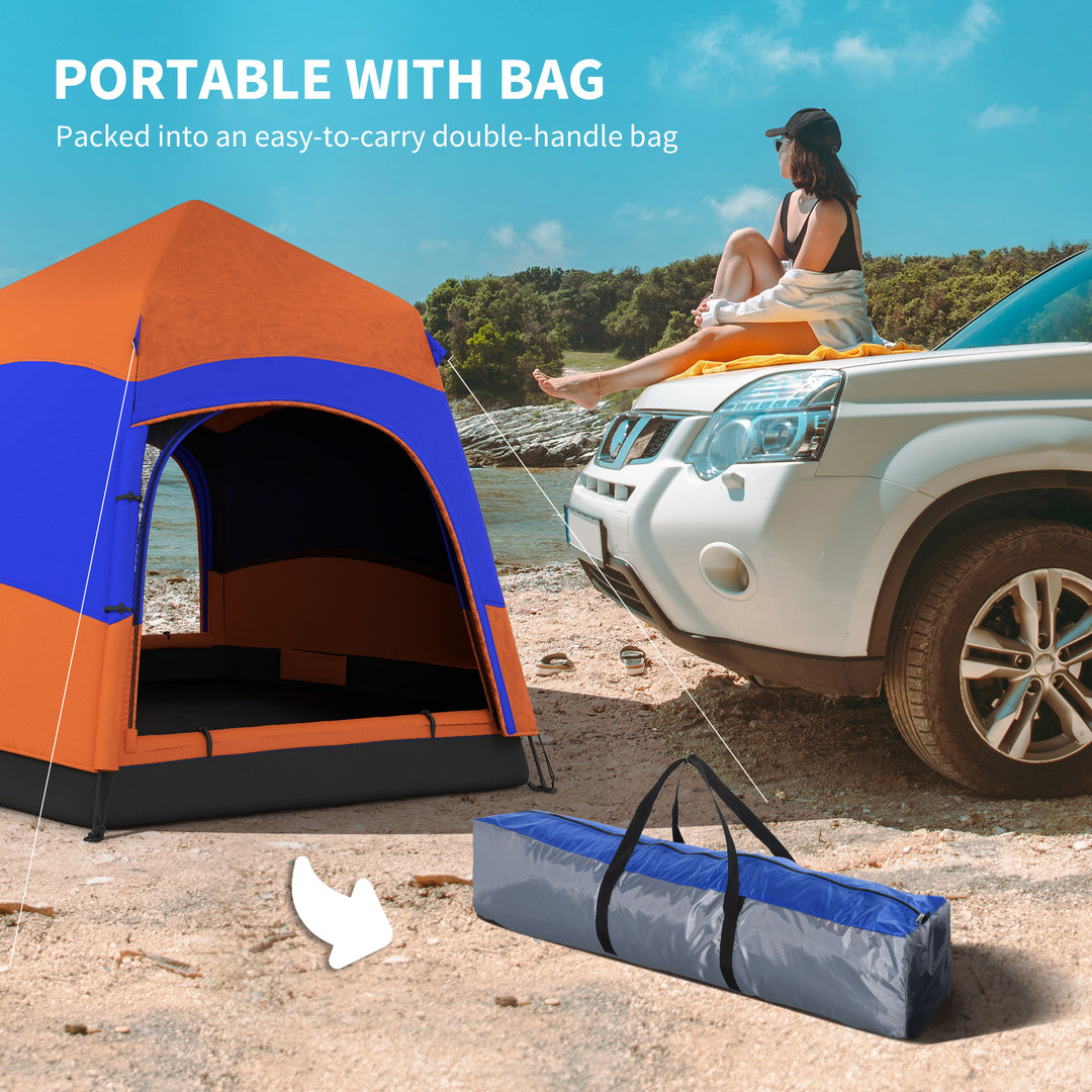 Accommodate yourself and others comfortably during camping trips, festival trips, hiking trips and more with this 4 person tent. With a 190T water-resistant polyester cloth, flexible fibre glass poles and Oxford cloth on the floor for protection, the family tent comes with steel stakes and guy ropes to stabilize. Accommodating 4 adults or 6 kids comfortably comfortably, our pop up tents for adults are finished with mesh windows for ventilation, 2 doors and two side storage pockets.