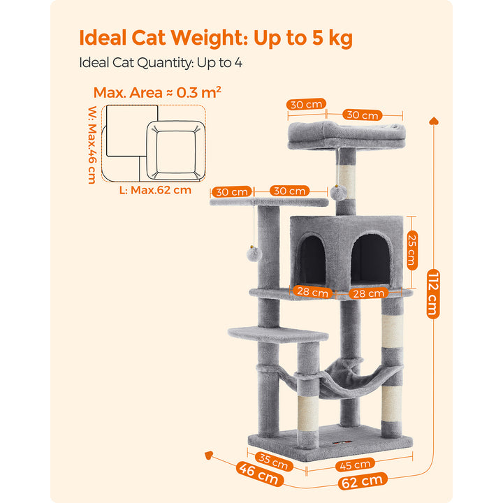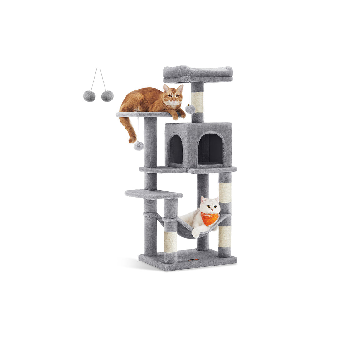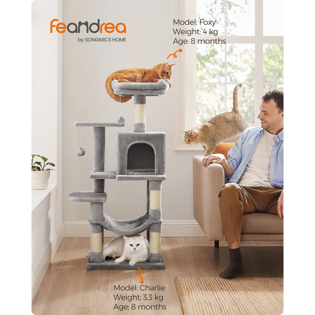 FEANDREA Cat Tree, Cat Condo with Hammock, 143 cm, Light Grey PCT161W01