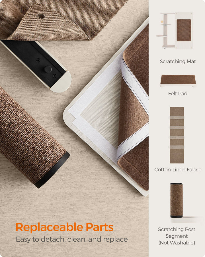 - Material: Particleboard, Felt, Carpet, Cotton-Linen Fabric, Pine Wood, PET, Acrylic