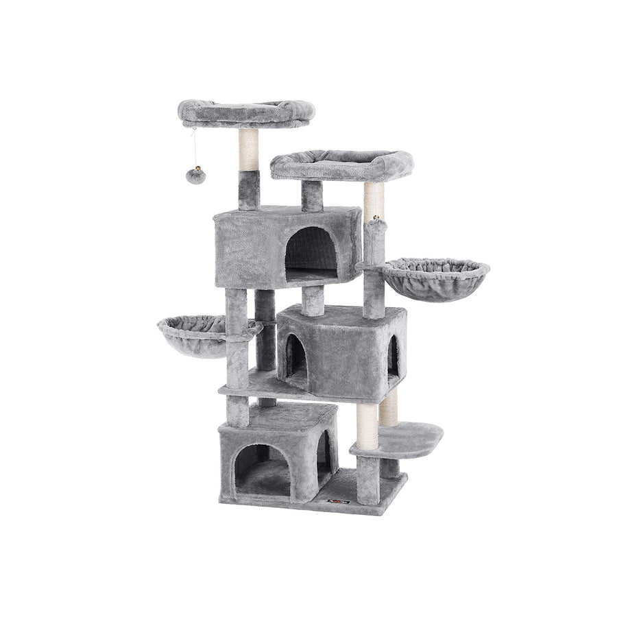FEANDREA Large Cat Tree with 3 Cat Caves, 164 cm Cat Tower, Light Grey PCT98W