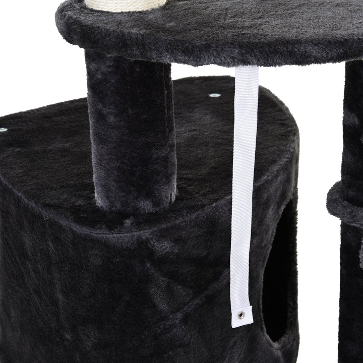 The cat tree from PawHut is great for 2-3 adult cats to play at the same time due to its 5-tier design and outstanding load capacity. It features one spacious condo with a tease cat ball for bringing your cats extra joys, a hammock for nap, 3 padded perches for viewing and a sisal scratching post for sharpening their claws. Sturdy and stable design makes this cat tower an ideal place to jump, climb and rest. Encourage your cats' natural playful behavior with this cat tower right now!