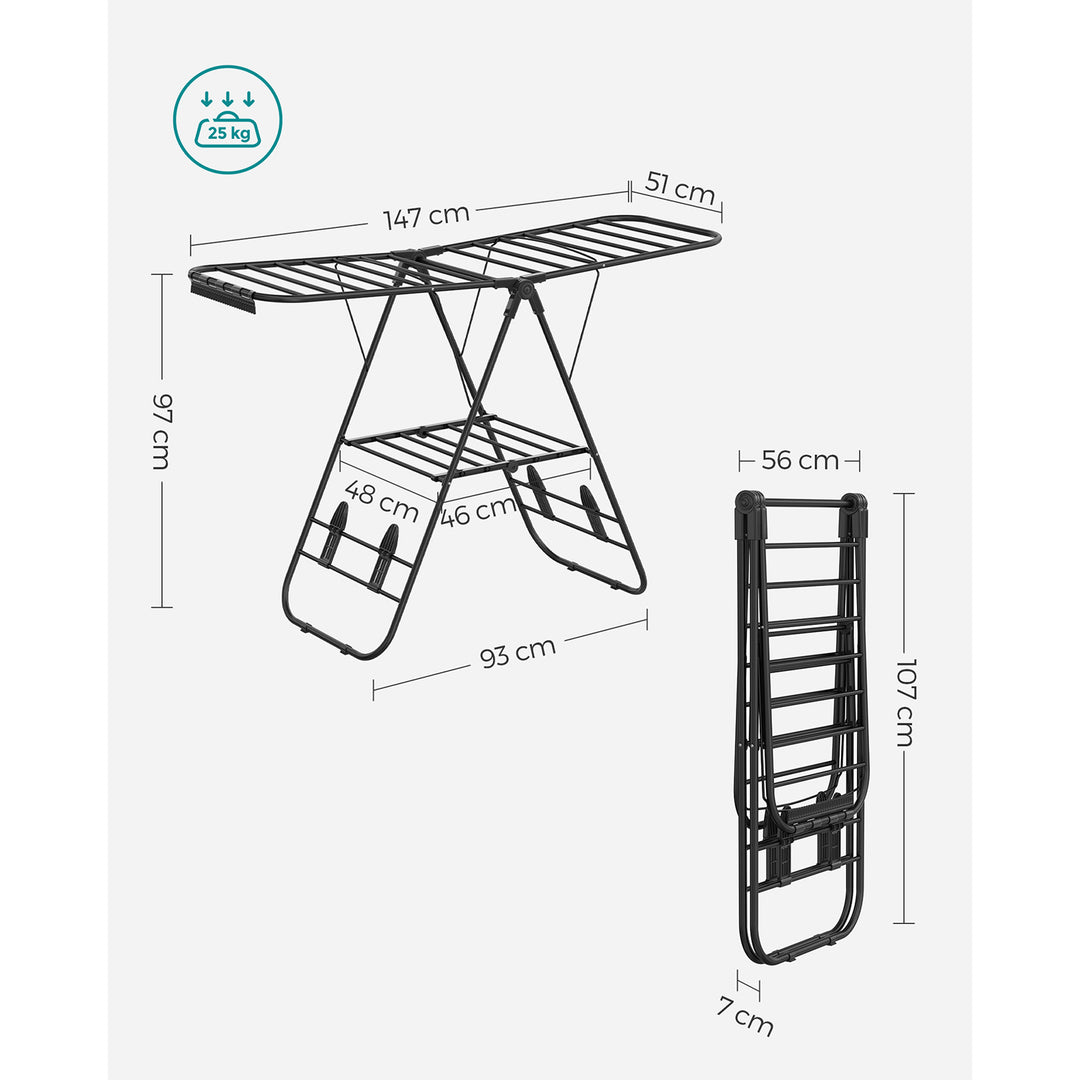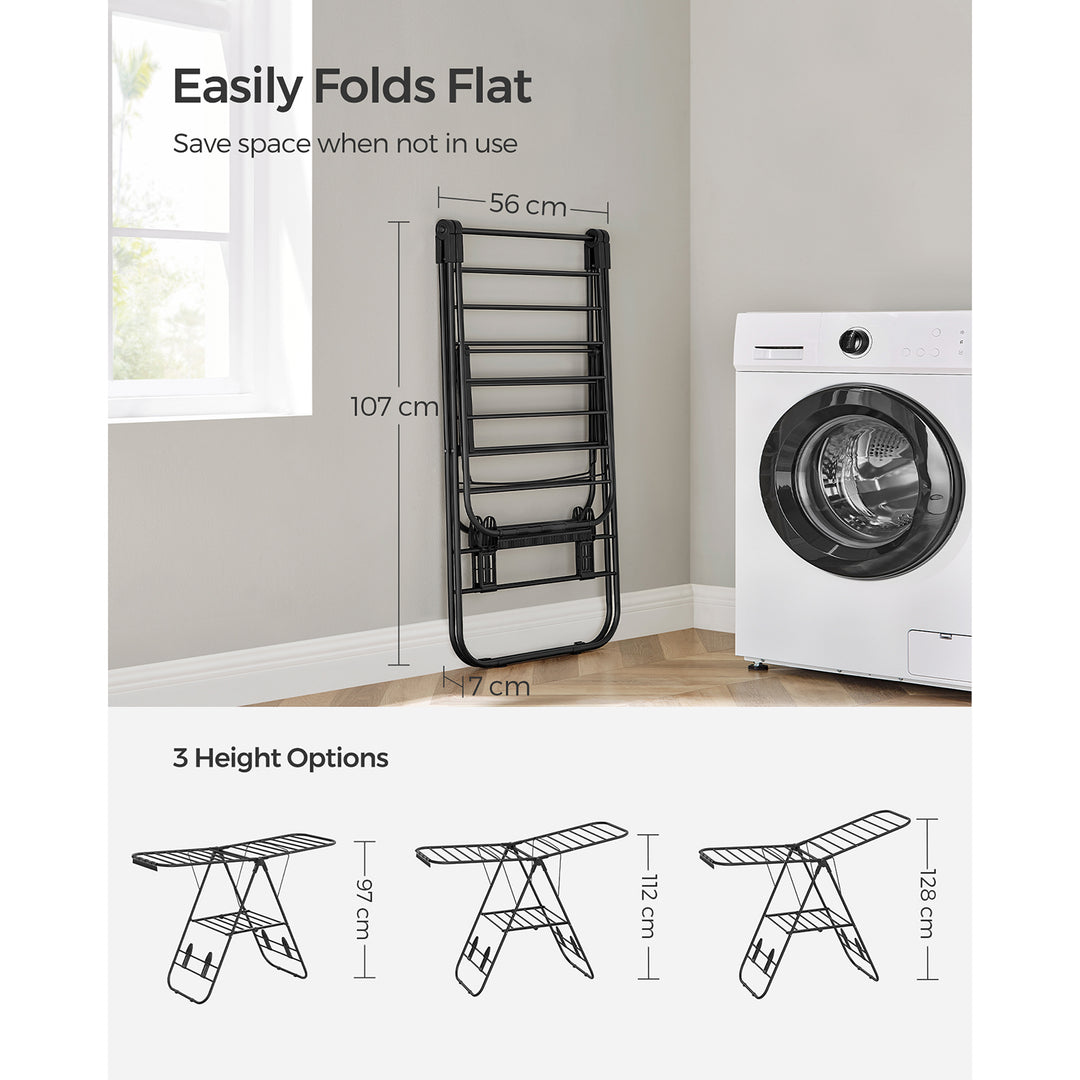 SONGMICS Folding Clothes Drying Rack , Winged Clothes Airer, 16 Metre Drying Space, Multifunctional Air Dryer, Stainless Steel Tubes Silver LLR502