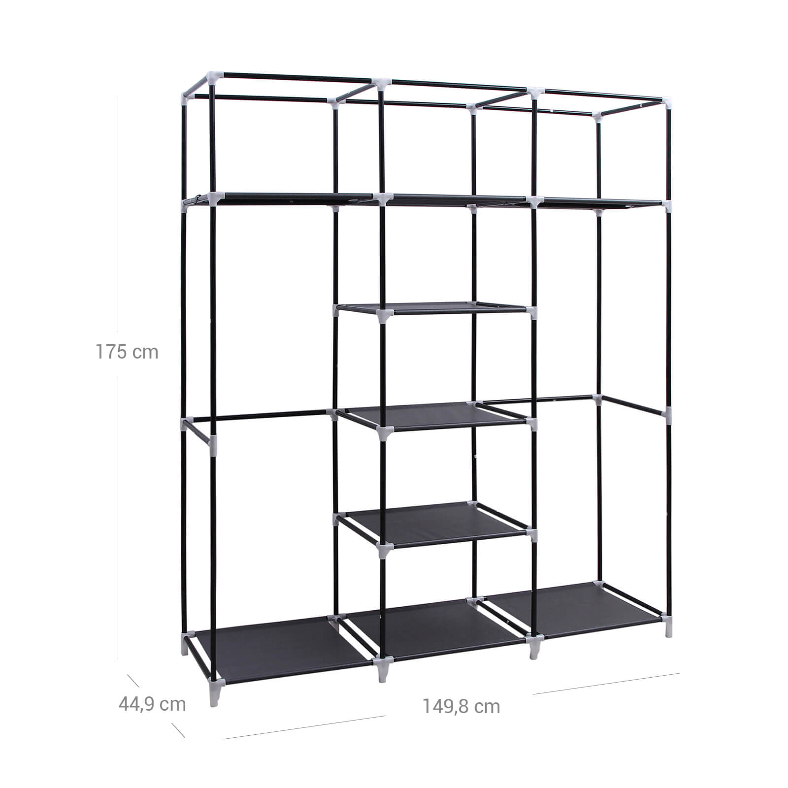 SONGMICS Canvas Wardrobe Cupboard Clothes Hanging Rail Storage Shelves Beige 175 x 150 x 45 cm RYG12M