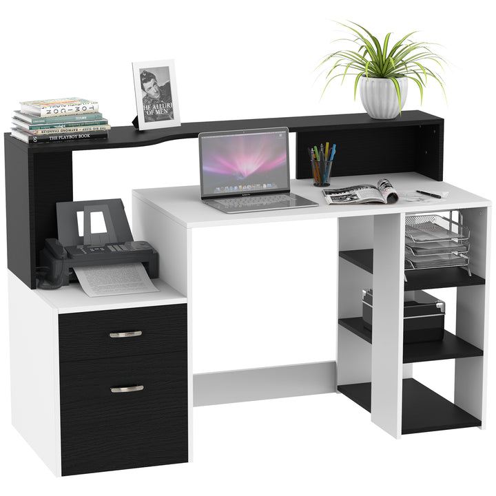 Computer Desk PC Table Modern Home Office Writing Workstation Furniture Printer Shelf Rack w/ Storage Drawer & Shelves (Black and white)