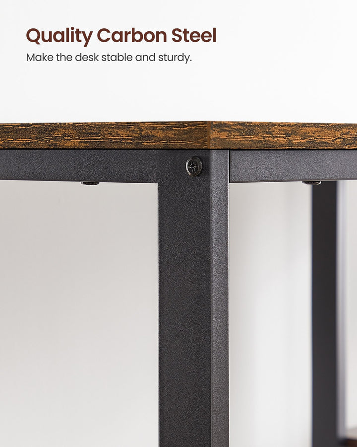 VASAGLE Computer Desk, Writing Desk with 2 Shelves on Left or Right, Work Table for Office Living Room, Steel Frame, Industrial, Rustic Brown and Black LWD55X