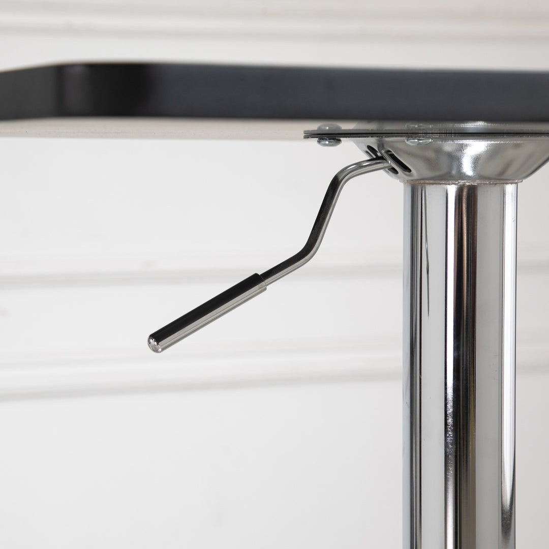 Stylish dining, at any height, doesn't come much easier than this. Look to this adjustable bar table from HOMCOM for the perfect place to eat, drink and relax - at any time of day. It uses polished steel for the frame with a large round base, which not only ensures it keeps steady and balanced, but gives it an overall beautiful and sleek look. The frame is adjustable so you can set to a level which is most comfortable. It comes complete with the square table top for a flat surface to use.