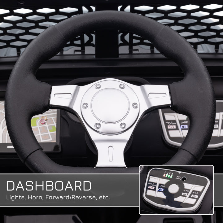 Make them the King or Queen of their own roads. This cool off road ride on car is ulta-cool in design and filled with a wealth of features for an enjoyable experience every time - such as the bright front headlights, dashboard and horn. The extra-wide tyres, seat belt and damping rear wheel design ensure safety. Finished with a steering wheel, this electric car for kids 3-6 years can go 5km/h and also comes with a remote control for parents.