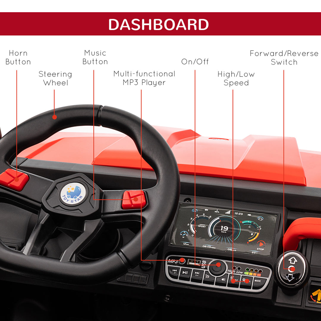 With this HOMCOM electric ride-on, kids will feel all the joys of driving. It's a two-seater, so they can bring friends along and enjoy the fun together. Capable of going up to 6km/h, this kids ride on utv features a music player, LED headlights and a horn – just like the real thing. The remote control lets parents get involved and control the electric UTV, so no one misses out on the enjoyment.
