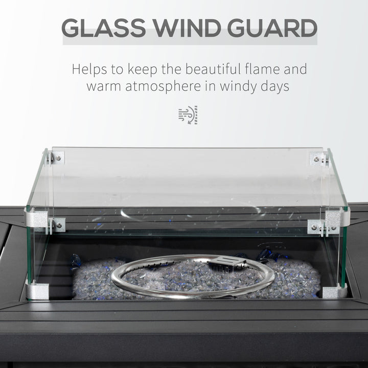 Enjoy the ultimate backyard ambiance year-round with this cozy and functional outdoor furniture from Outsunny that has both a fire pit and dining table in one. It features a classic rattan design body that cleverly conceals the propane tank inside. Complete with a 50,000 BTU burner, you can enjoy all the pleasures of a charming flame without worrying about messy ashes. Whether it's on a porch, patio, or in your garden, our patio fire pit table makes a classy addition to your home.