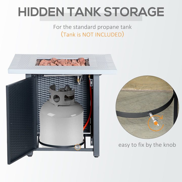Enjoy the ultimate garden ambiance all year-round with this Outsunny fire pit table. The rattan design is stylish, with an inner compartment to hold propane tank safely. The 40000 BTU burner means you can enjoy a flame without worrying about messy ashes. Whether it's on a porch, patio, or in your garden, our outdoor fire pit is a great addition to your home.