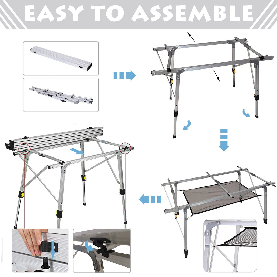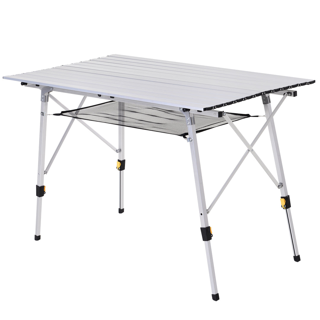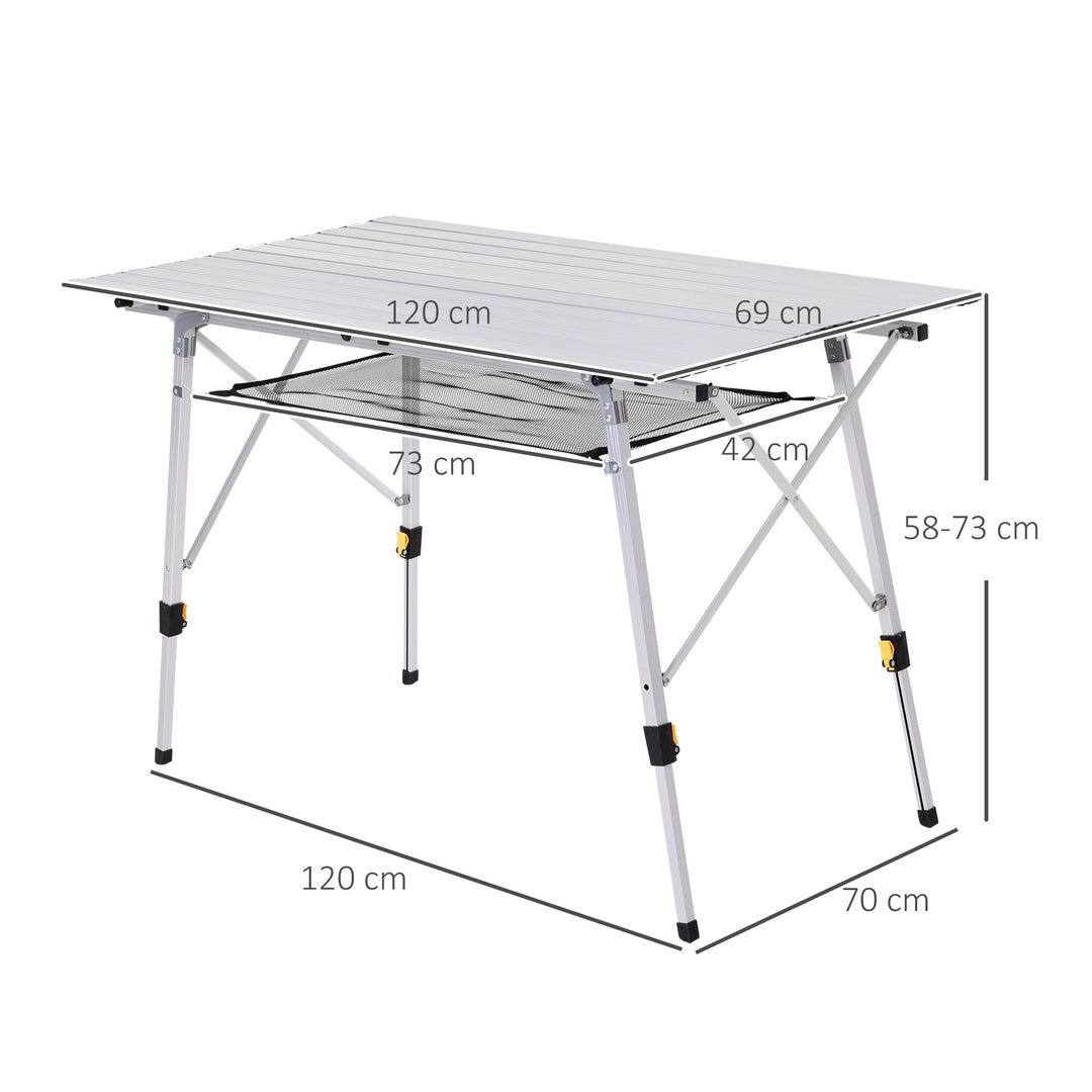 Bring simplicity into dining during your outdoor adventures with this picnic table from Outsunny. Formed from aluminium to ensure it is lightweight yet sturdy, this table is formed of two parts: the base and the tabletop. Foldable in design, the base is fitted with four legs, all of which can be adjusted from 58cm to 73cm, with rubber pads on the legs to keep it balanced on the ground. This piece completed with a fabric mesh sling for keeping plates, cutlery and condiments close to you.