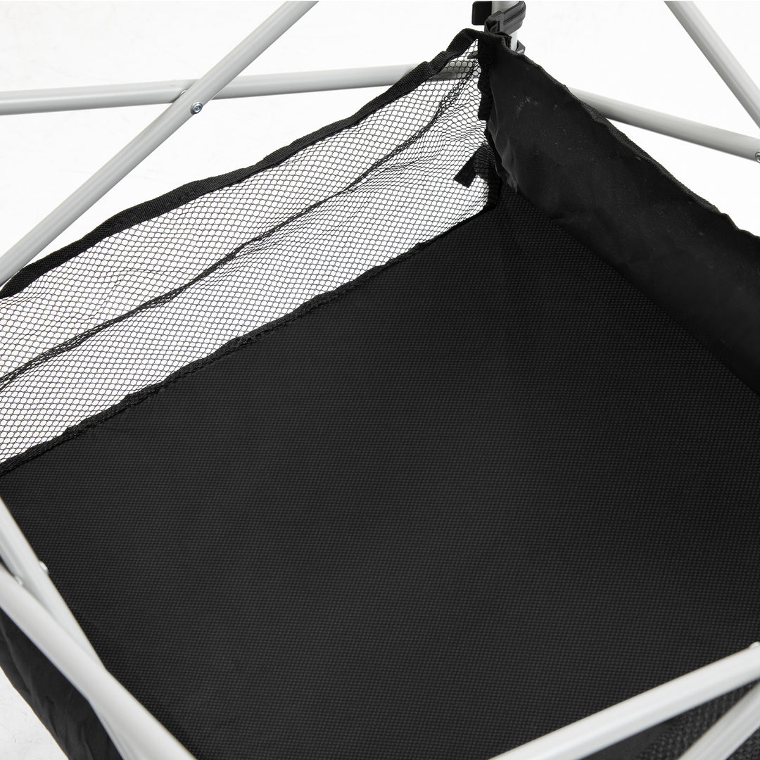 Bring cool innovation into your everyday outdoor life and special trips - choose this steel frame table from Outsunny. The design combines a small square table with a mesh storage bag underneath - meaning you can dine and keep everything you need stored right underneath. The bag can also be used as a temporary bin, preventing rubbish build-up when you're camping. To complete this clever piece, it comes with a detachable aluminium table top which rolls up for compact storage. An essential outdoor dining product which makes your trips even more enjoyable than before.