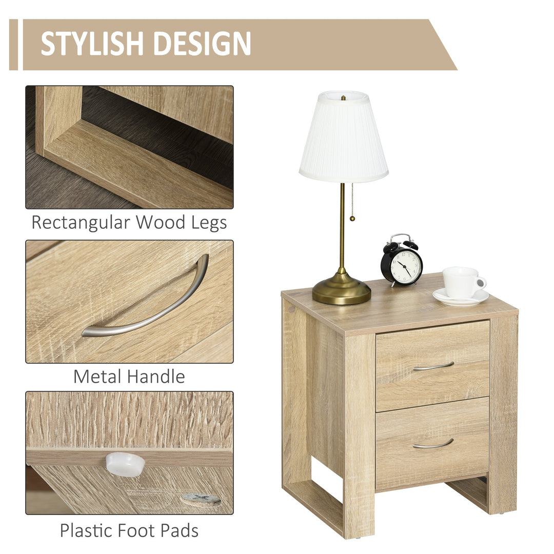 2 Drawer Modern Boxy Bedside Table w/ Handles Elevated Base Melamine Coating Bedroom Storage Furniture Night Stand Organisation Oak Brown