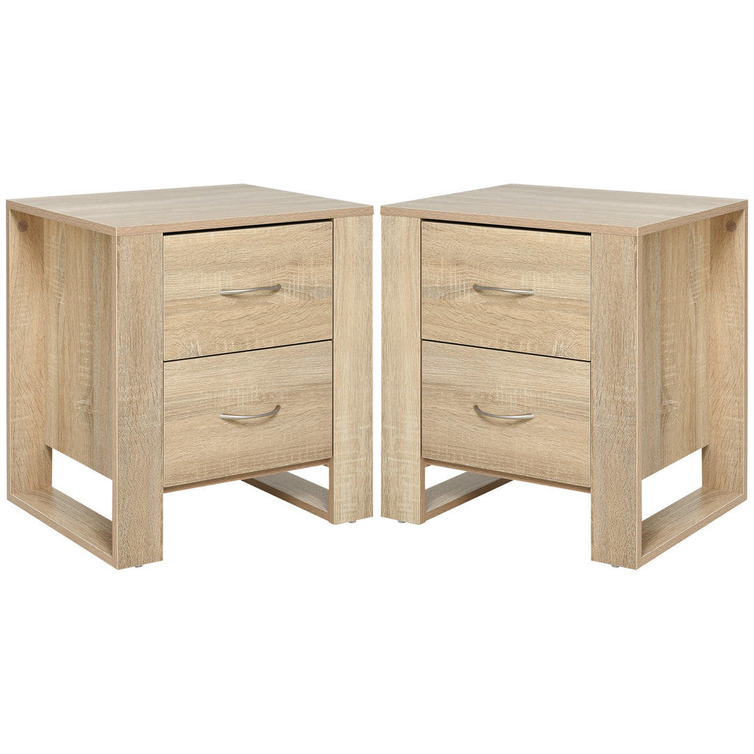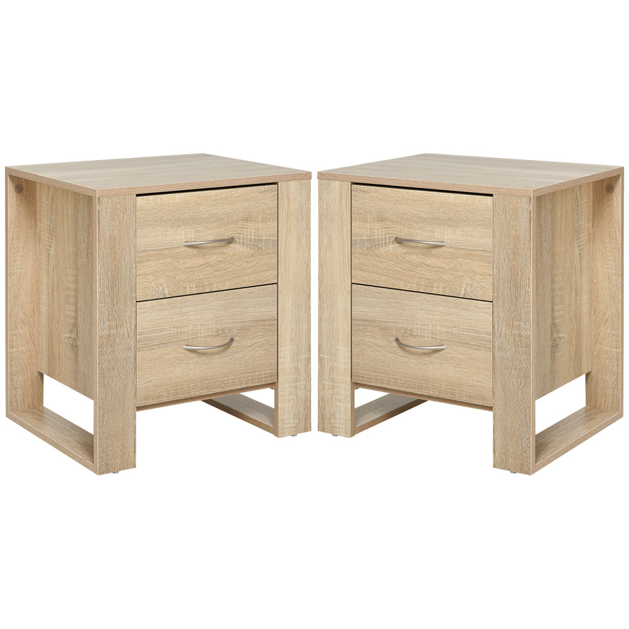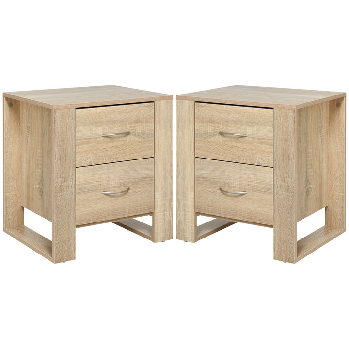 Bedside Table with 2 Drawers, Nightstand with Handles and Elevated Base, Side Table for Bedroom, Living Room, Set of 2, Brown