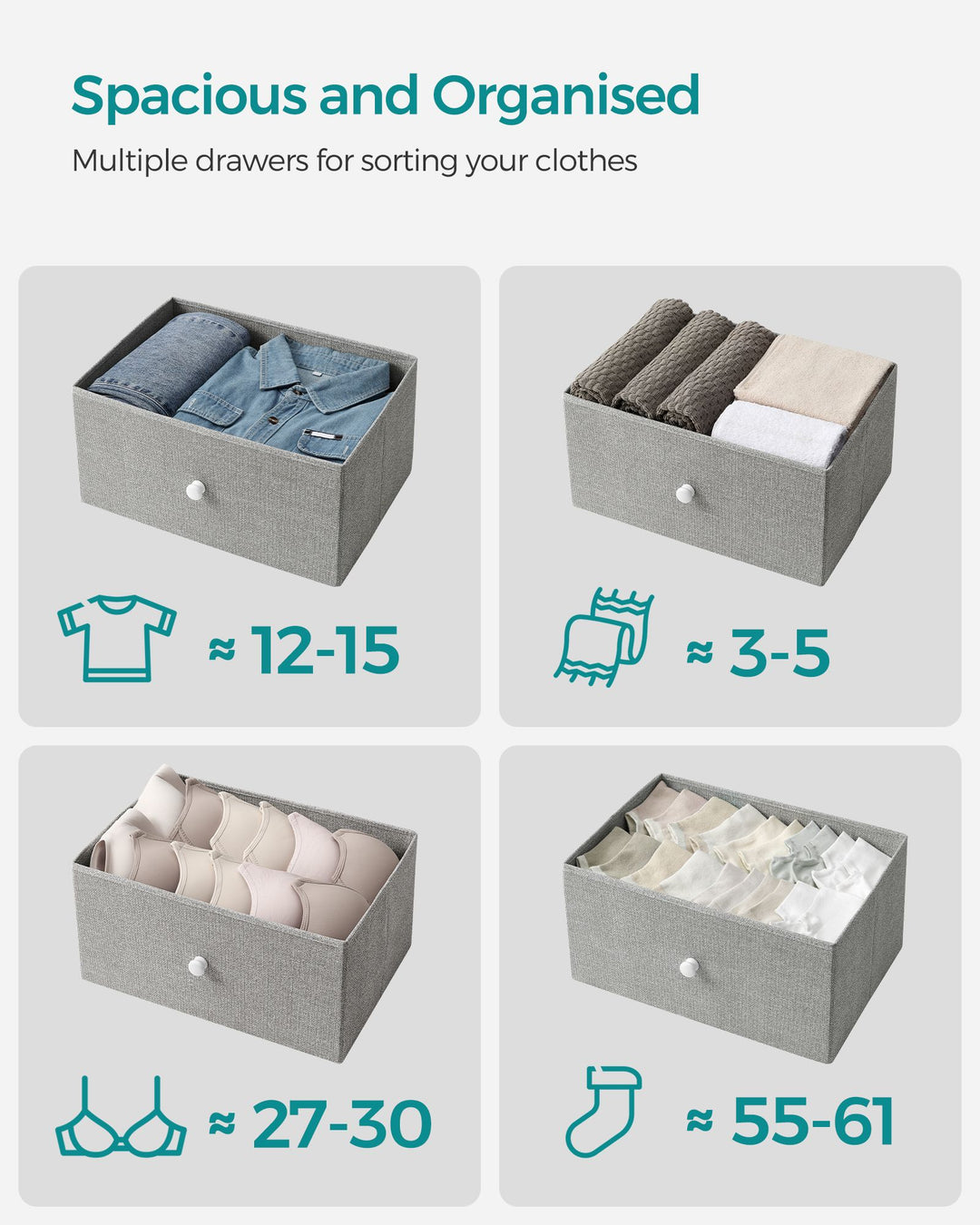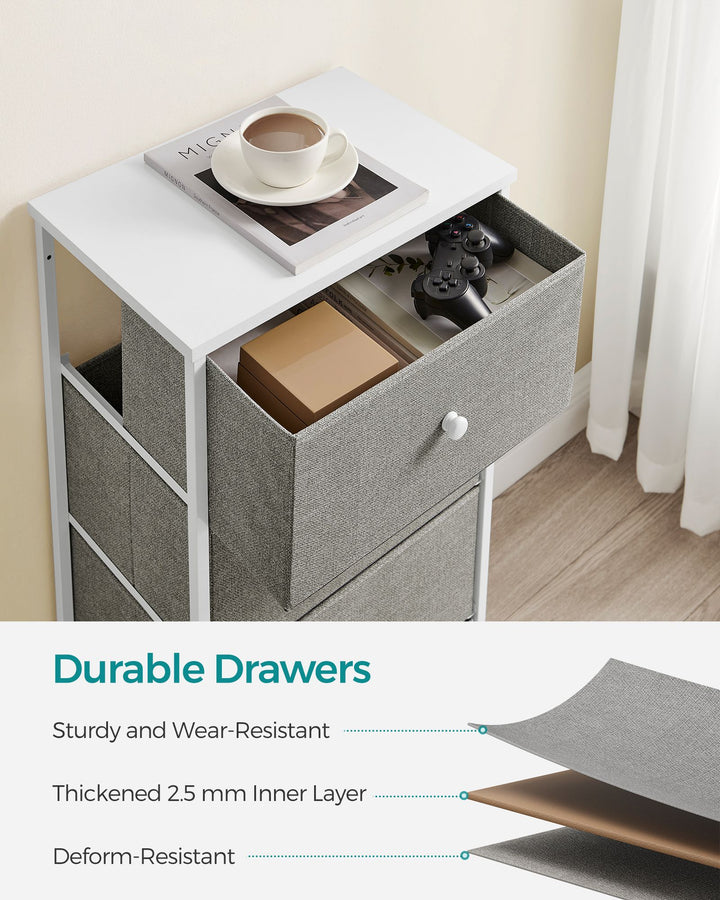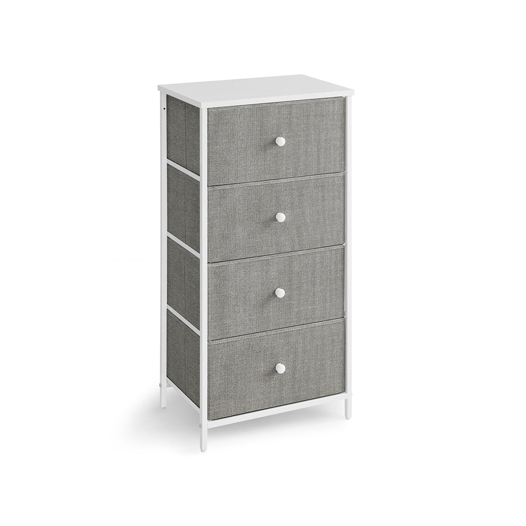 SONGMICS Chest of Drawers Bedroom, Drawer Storage Unit, Dresser with 4 Fabric Drawers, Metal Frame, Tall and Slim, for Closet, Light Grey and White LTS314L10