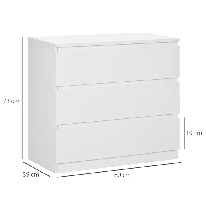 HOMCOM Chest of Drawers, 3-Drawer Storage Organiser Unit for Bedroom, Living Room, White