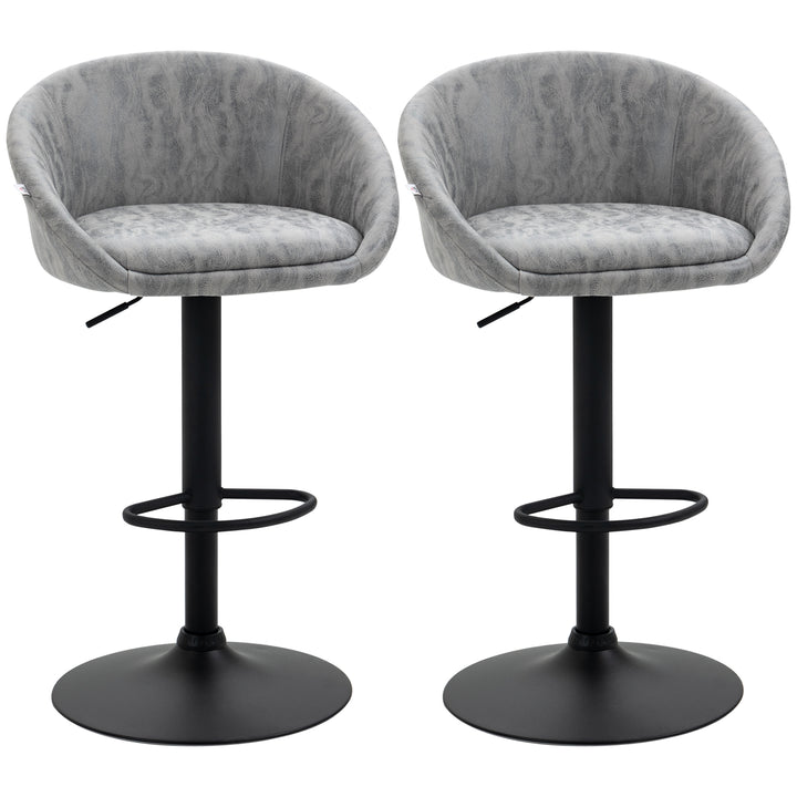 Simple and modern kitchen stools with backs from HOMCOM. Whether you want to start the morning with a comfy breakfast, or end the night with company and drinks, the sleek adjustable stool set give you what you want. The adjustable height makes them easy to set to a level most suitable for you. The cushioned seats, curved armrests and curved backs keep you comfortable and supported. Completed with strong steel base and footrests.
