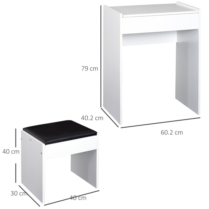 Stylish dressing table set from HOMCOM comes with a multi-purpose dressing table and a padded stool. The flip-up design allows you to easily convert the dressing table with a mirror to an ideal writing desk with hidden storage space under the lid. The removable space divider enables you to organise your items neatly in place. Smooth leather and soft sponge, the padded stool provides added comfort. Constructed with 16 mm-thick E1 chipboard, the table set features eco-friendly with easy-to-clean veneer and ensures long-lasting use.