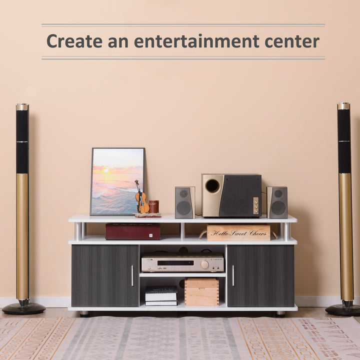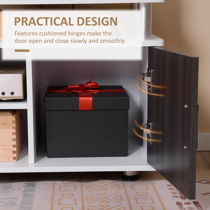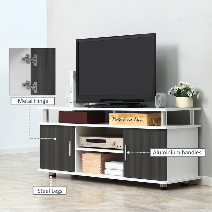 TV Cabinet Unit for TVs up to 55'' with Storage Shelf and Cupboards, Living Room Entertainment Center Media Console, Grey and White