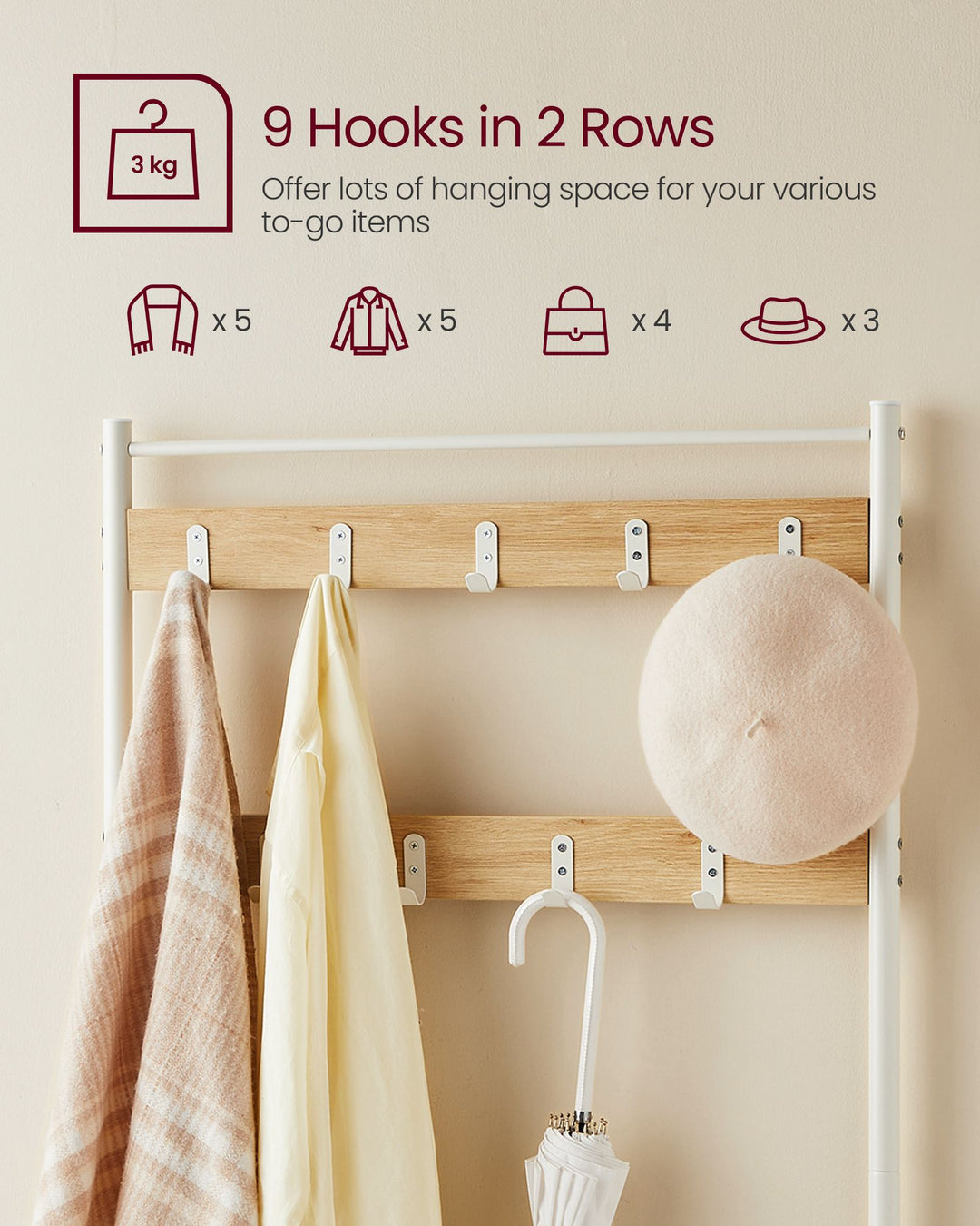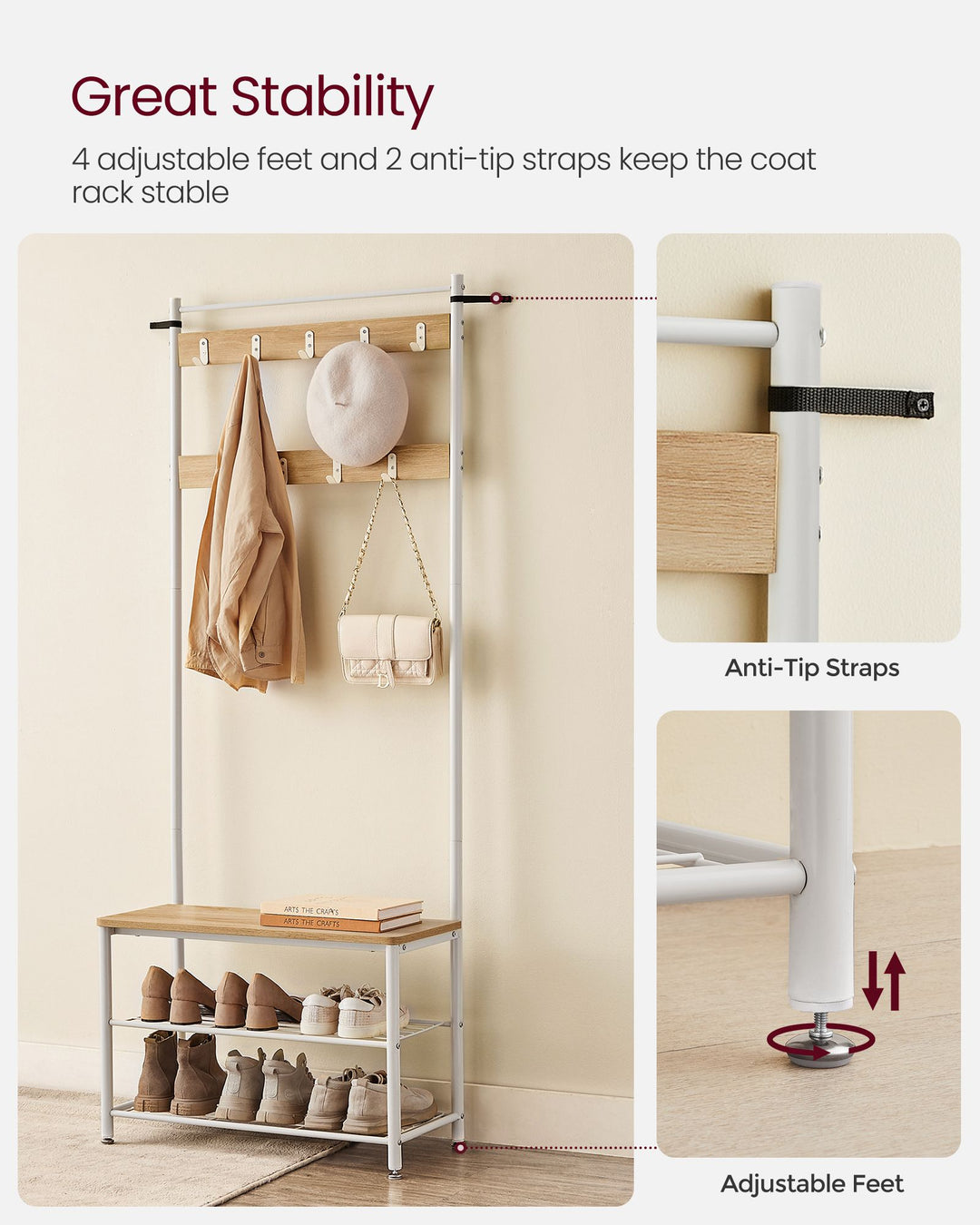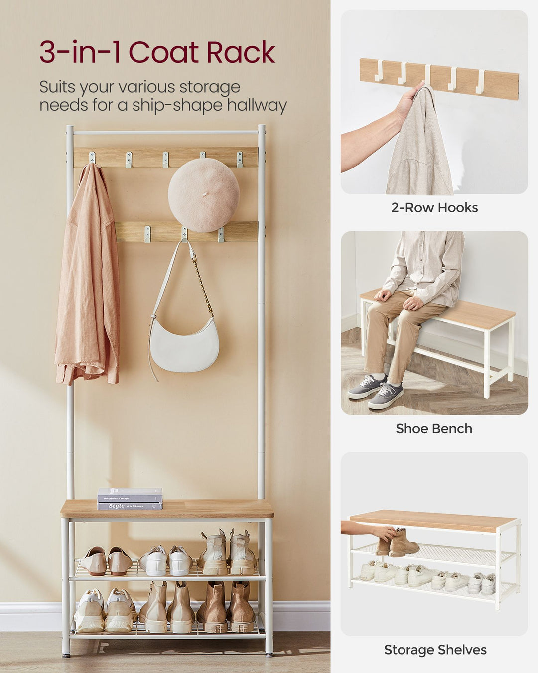 VASAGLE Hang up your coat, take a seat, untie your shoes, and place them on one of the shelves down below — now you’re ready to unwind.