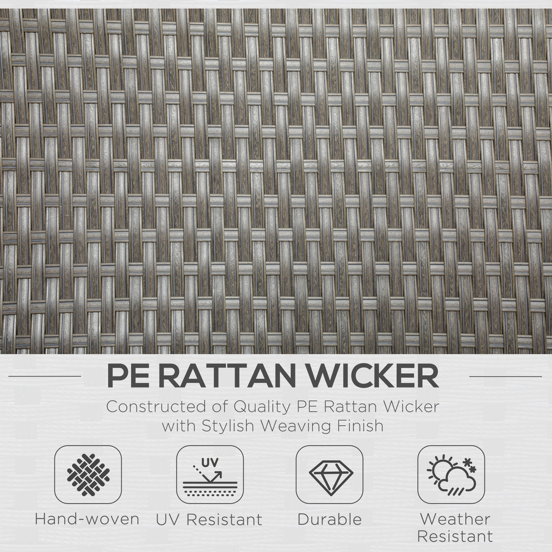 An inviting outdoors, this season and beyond: say hello to this Outsunny rattan furniture set. All pieces have a galvanised steel frame for a strong core, wrapped in plastic wicker for double the durability - and style, of course. The two armchairs have 90°-135° reclining backs - extra relaxing points scored! Seat and back cushions for comfort. Complete with a glass-top coffee table.