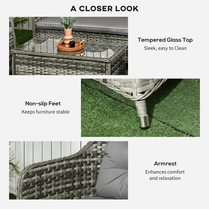 4 Pieces PE Rattan Wicker Sofa Set Outdoor Conservatory Furniture Lawn Patio Coffee Table w/ Cushion - Grey