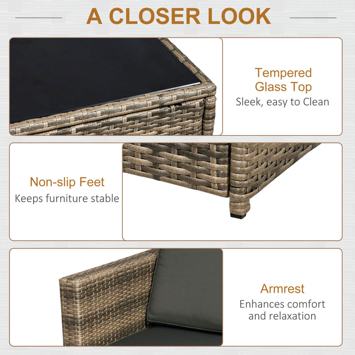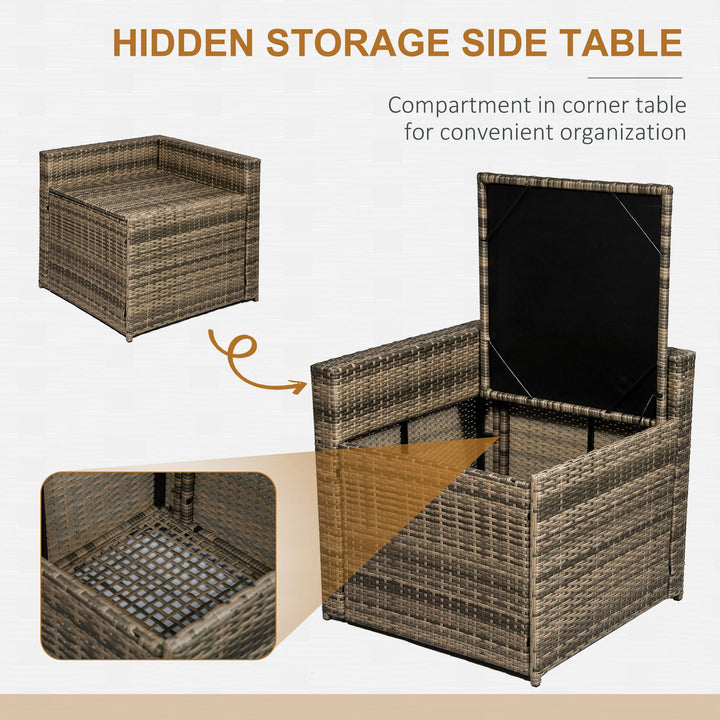 6-Seater Outdoor Rattan Wicker Sofa Set with Hidden Storage Side Table and Cushions, Mixed Brown