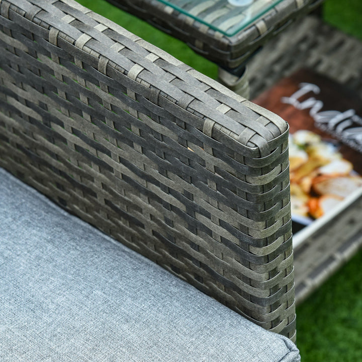 Outsunny Garden Rattan Furniture 3 Pieces Patio Bistro Set Wicker Weave Conservatory Sofa Chair & Table Set with Cushion Pillow - Grey