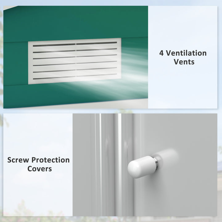 Keep your garden equipment and outdoor essentials locked away securely with this metal shed with floor from Outsunny. Built from galvanised steel for enduring reliability, it is made with a lockable double sliding door on the front for easy access, four vents for air to circulate and prevent moisture build up. The garden tool shed is finished with a protective weather coating and a floor foundation for it to stand level on the ground. The perfect outdoor sheds and garden buildings.