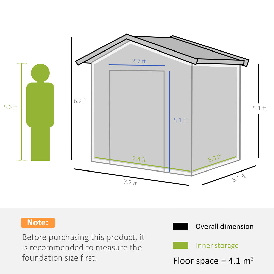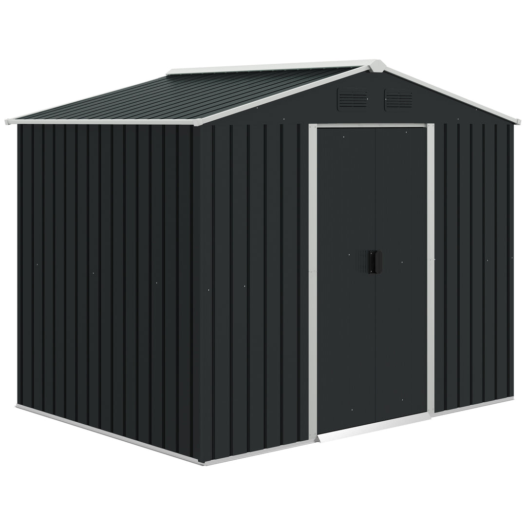 Outsunny 8 x 6ft Garden Storage Shed Double Door Ventilation Windows Sloped Roof Outdoor Equipment Tool, Grey