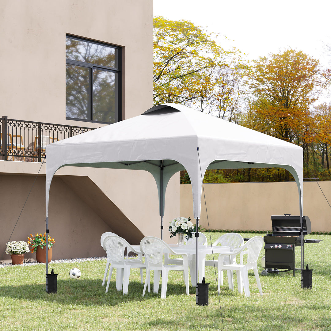 This Outsunny folding party tent is great for outdoor gatherings, camping trips BBQs, car boot sales and much, much more. It's easy to put up - this garden tent will be up in a matter of minutes due. The powder coated steel frame is strong, with included accessories to fix tighter to the ground. The UV50+ fabric canopy protects you from direct sunlight and light showers. And when done? Simply fold away into the wheeled carry bag.