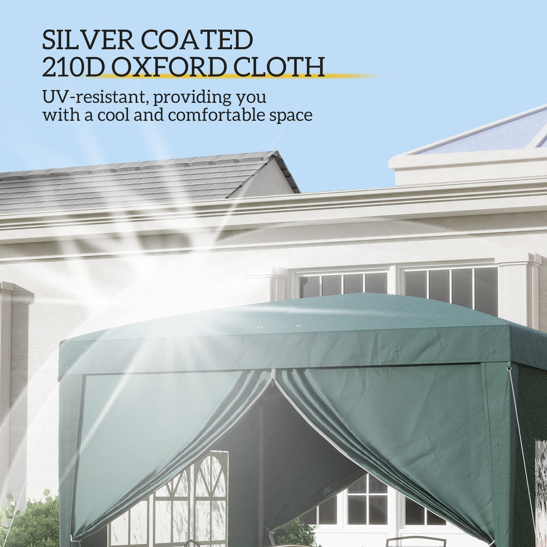 This Outsunny 2.95 x 2.95m gazebo with sides is a great, no-fuss outdoor shelter. It is ideal for family parties, weddings, picnics, sports events, outdoor vendors, craft fairs, job sites and camping trips. The pop-up design makes set-up and take down super easy. It comes with two removable walls: create an open or closed feel, whenever. The powder-coated steel frame means a strong standing structure. Comes with guy ropes and ground stakes to pin to the ground for extra stability.