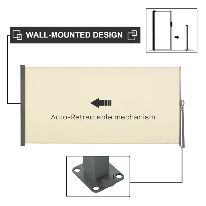 Prevent glaring sun and gusting winds disturbing you outdoors with this retractable screen from Outsunny. The metal base frame is tough to ensure it is a lasting addition in your garden, with it attaching securely and easily to cement or solid wood for quick set up. The free standing awning is made from polyester with PA coating for weather-resistance, with it pulling out smoothly and fixating in place with the clip lock handle – a simple operation. A great way to enjoyably extend your time out in the garden.