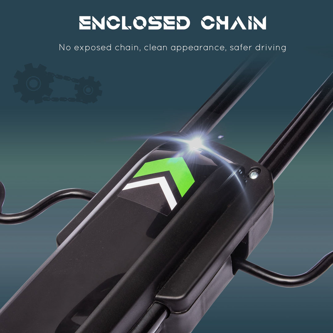 - Inflatable rubber wheels with a suspension system, ensuring the ride is smooth
