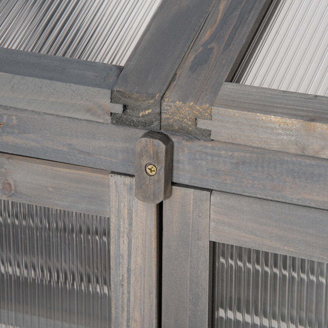 This cold frame greenhouse, from Outsunny, is a great choice to care for your plants. Solid fir wood frame for reliability. Transparent polycarbonate panels allow maximum light transmission, whilst retaining heat for early seed sprouting or for protecting plants late in the season. Features three removable shelves for organising plants. This plant grow house creates an ideal-temperature environment, so plants can grow healthily.