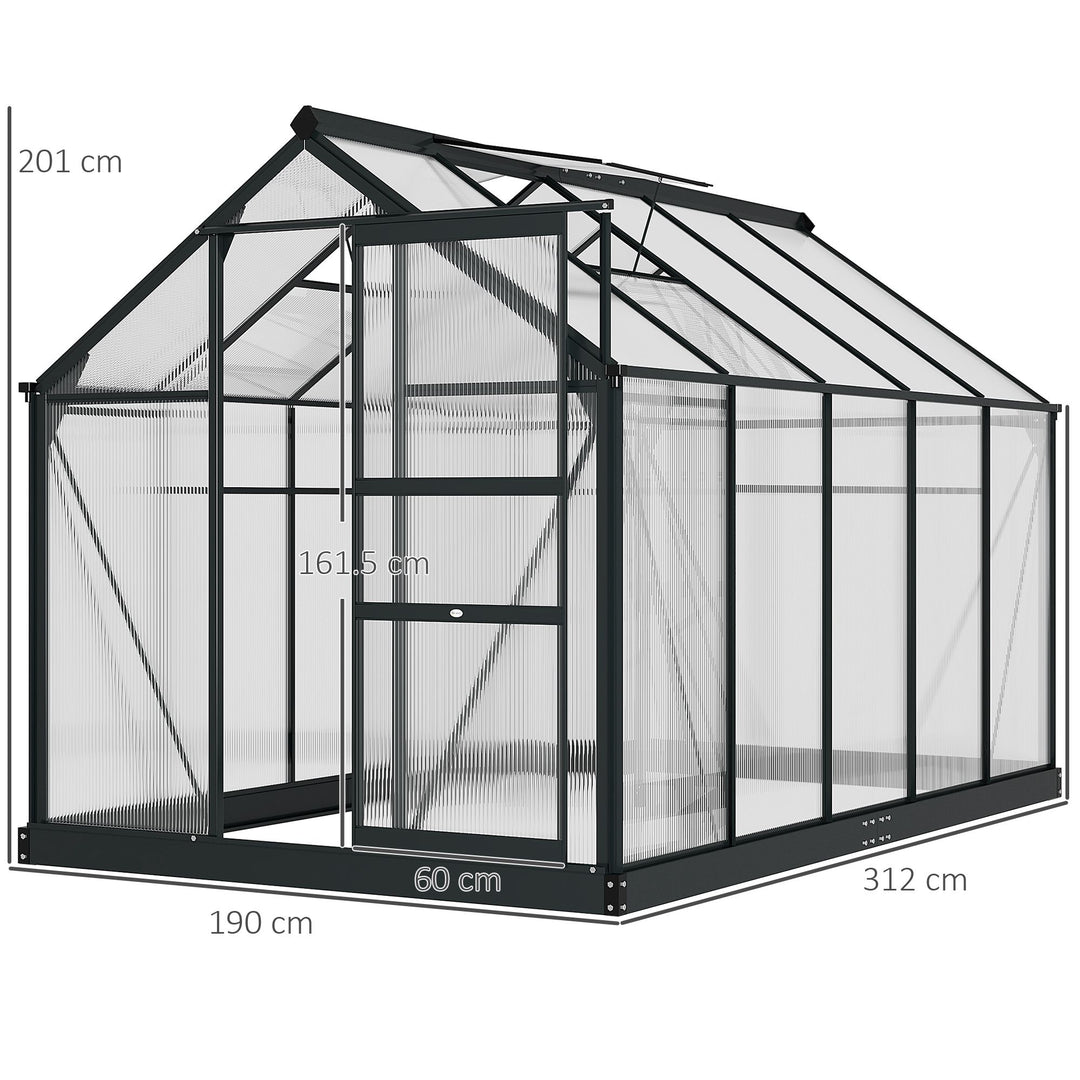 Start and continue the season right with this Outsunny 6ft x 10ft greenhouse. An open, walk-in design means it's easy to enter and leave, whilst giving you the full free space to set it up how you want. A powder-coated aluminium frame means a strong structure, with four ground stakes included to pin to the ground. Features a sliding door for easy access in and out, with a lift-up roof which holds in place - it's easy to let in fresh air, whenever you want.