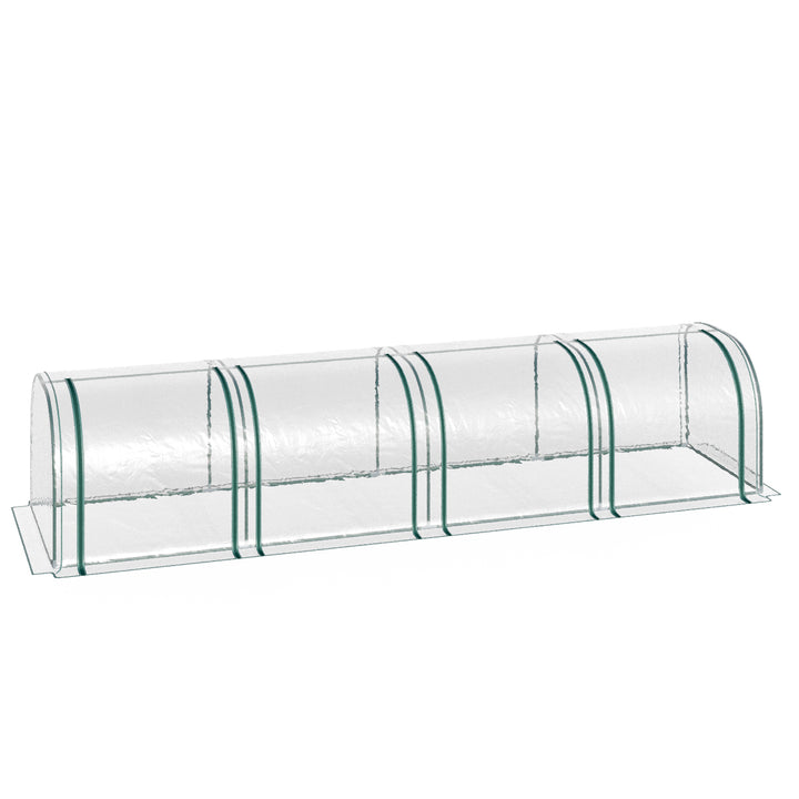 Grow plants, vegetables, fruit and flowers safely all year round with this long tunnel greenhouse from Outsunny. With a powder coated steel frame for strength and durability, it features a durable cover, helping to protect plants from cold, whilst providing plenty of sunlight for them to nourish and grow. The cover also features zipped doors, providing you easy access and ventilation throughout. Lightweight enough to be moved around, this greenhouse is perfect for gardens, patios, balconies.