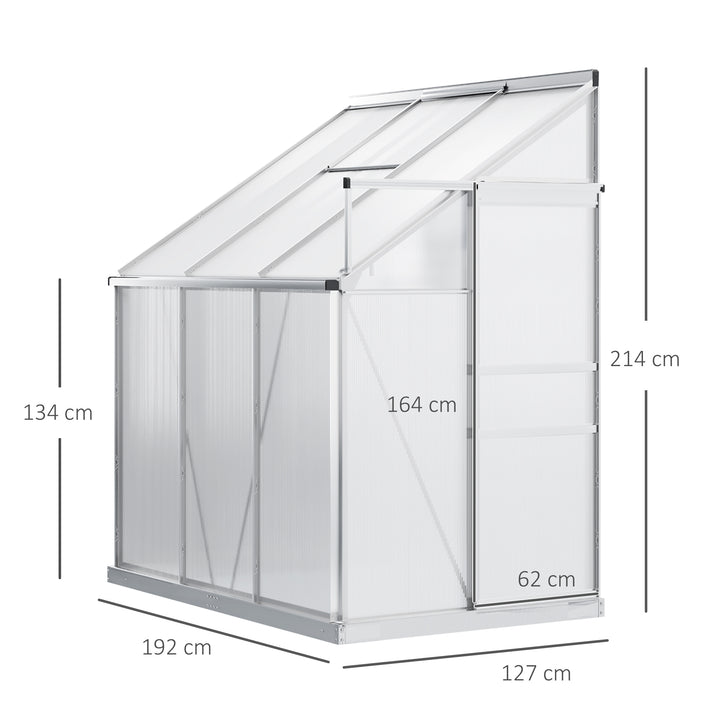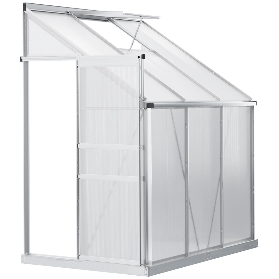 Outsunny Walk-In Greenhouse Lean to Wall Polycarbonate Garden Greenhouse with Adjustable Roof Vent, Rain Gutter and Sliding Door, 6 x 4 ft