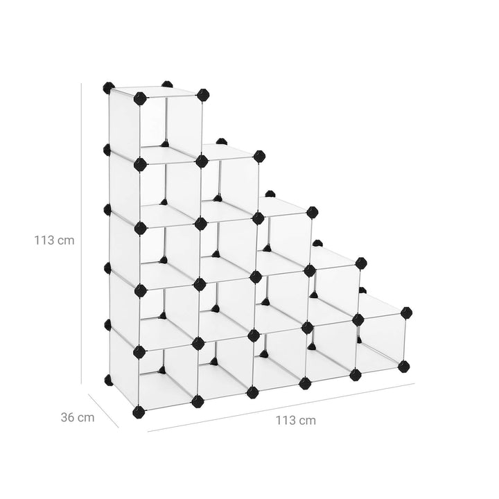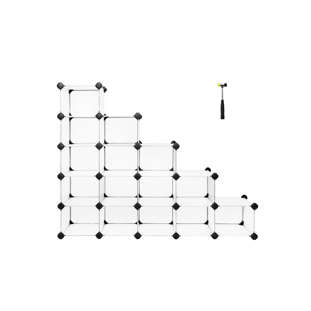 SONGMICS 16-cubes DIY Plastic Shoe Rack Interlocking Modular Shelving Storage Unit Organiser kids Closet Wardrobe Clothes Cabinet Translucent White LPC44S